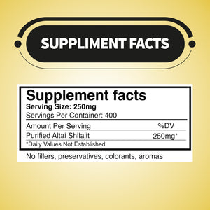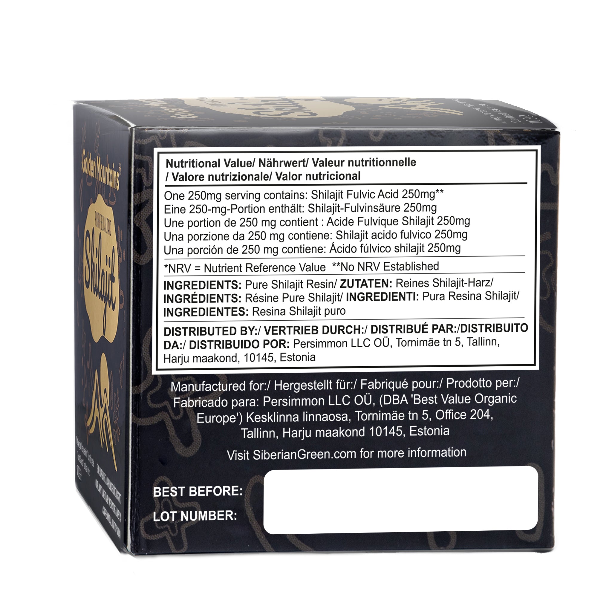 Découvrez la résine de Shilajit des Montagnes d'Or de la plus haute qualité, une résine naturelle récoltée dans les montagnes écologiques de l'Altaï en Sibérie. Considérée comme un adaptogène et un rajeunissant dans les anciennes pratiques de bien-être, cette résine de Shilajit est cependant beaucoup plus puissante et est appréciée pour les bienfaits qu'elle apporte en augmentant la vitalité. Le Shilajit des Montagnes d'Or purifié et rajeuni est traité par la technologie de pointe exclusive de l'entreprise, garantissant la conservation des avantages authentiques du produit, sans utilisation de conservateurs, de colorants ou de matériaux synthétiques.
