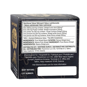 Il s'agit d'une substance lourde ressemblant à de la résine que l'on trouve également dans certaines montagnes. Elle est formée par la chaleur et la pression agissant sur les couches du sol au cours d'une période géologique considérable. Elle contient une très grande quantité d'acides fulviques, de minéraux et d'antioxydants qui contribuent à améliorer les niveaux d'énergie, la résistance mentale et le bien-être général des individus.