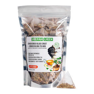 Détendez-vous avec le thé vert sibérien au ginkgo biloba et au chaga, un mélange à la fois savoureux et agréable, soigneusement élaboré pour créer un thé sain infusé de ginkgo biloba et de champignons chaga de Sibérie. Chaque sachet de thé est exempt d'OGM, d'agents de remplissage et d'additifs artificiels, tout en offrant une expérience saine et riche en nutriments. Provenant de la République de l'Altaï, ces sachets vous offrent le meilleur de la nature.