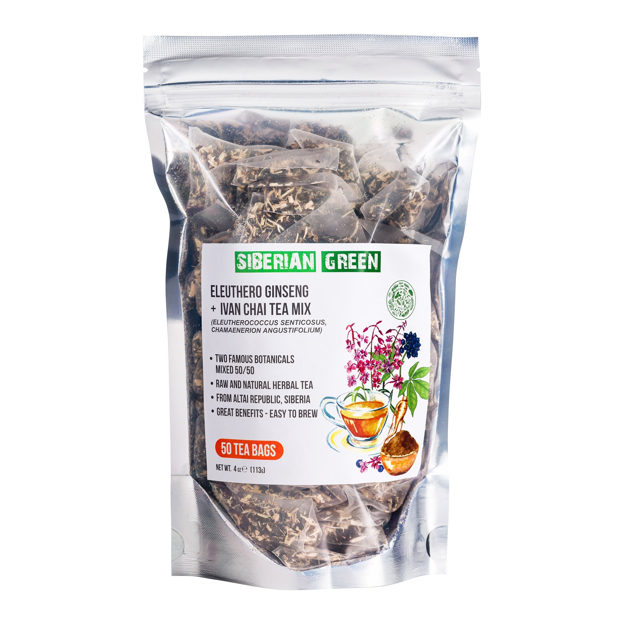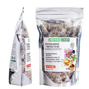 Le mélange de plantes Siberian Green Eleuthero Root et Ivan Tea offre l'équilibre parfait pour nourrir le corps et l'esprit. Ce thé est composé à 50/50 de racine d'éleuthérocoque et de thé Ivan Rosebay. Il a une saveur florale douce et sucrée qui est unique et agréable.