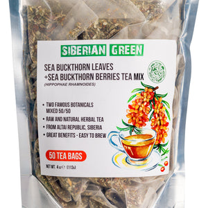 Notre thé est fabriqué à partir d'un mélange 50/50 méticuleusement préparé de baies et de feuilles d'argousier, qui sont séchées et préservées afin de conserver leurs bienfaits naturels. L'argousier est reconnu depuis longtemps pour ses quantités impressionnantes de vitamines C et E, de bêta-carotène et d'acides gras oméga-7 qui, lorsqu'ils sont combinés, aident à soutenir la santé :